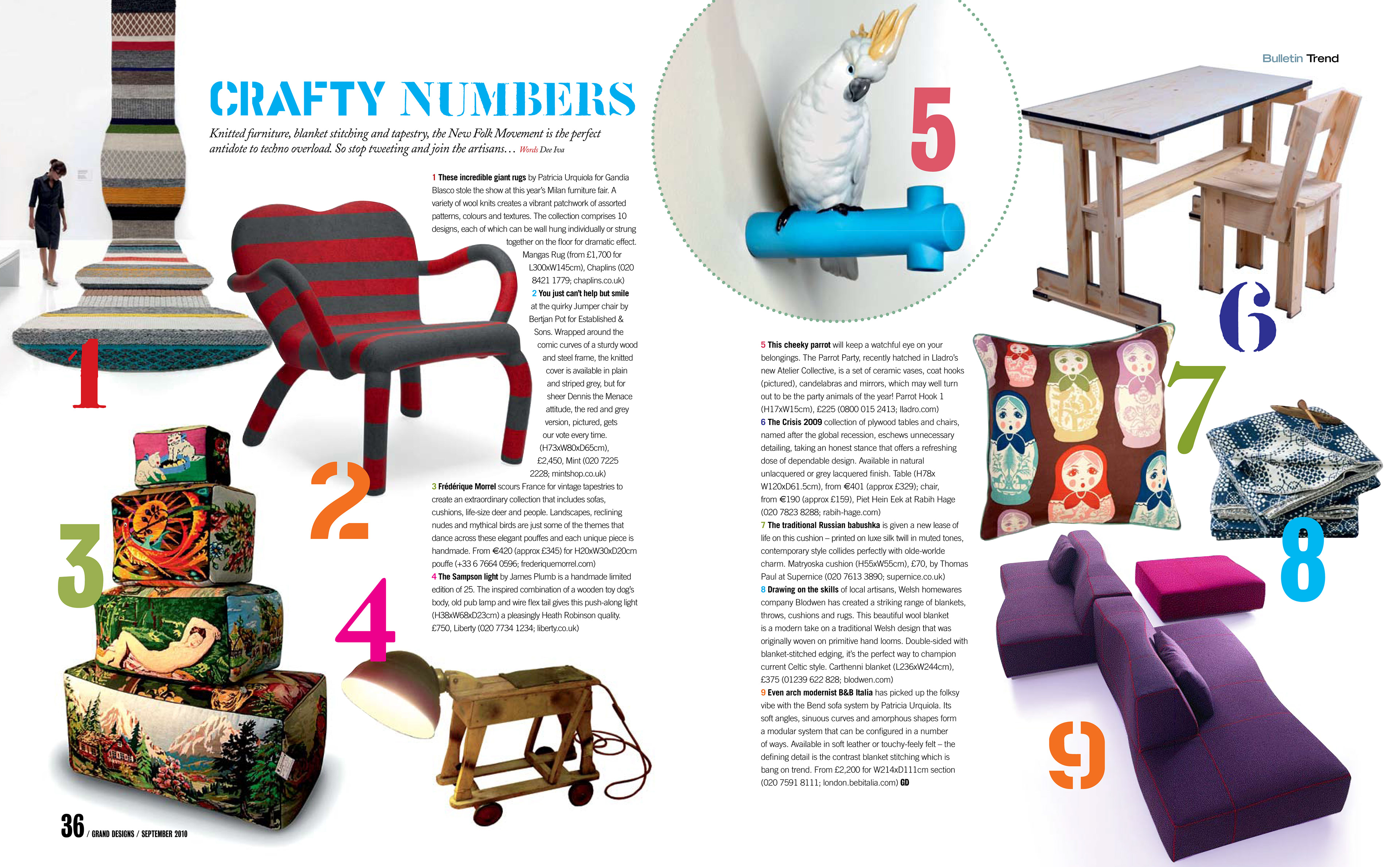 Regular monthly column writing about interior trends